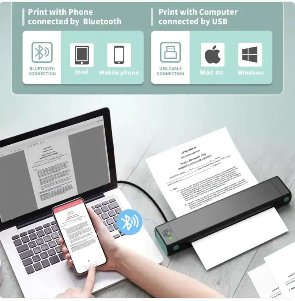 Impresora térmica portátil A4 M08F: impresión inalámbrica y eficiente